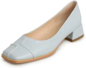 TinaCus Women's Genuine Leather Handmade Stitching Square Toe Slip On Dress Pumps Shoes
